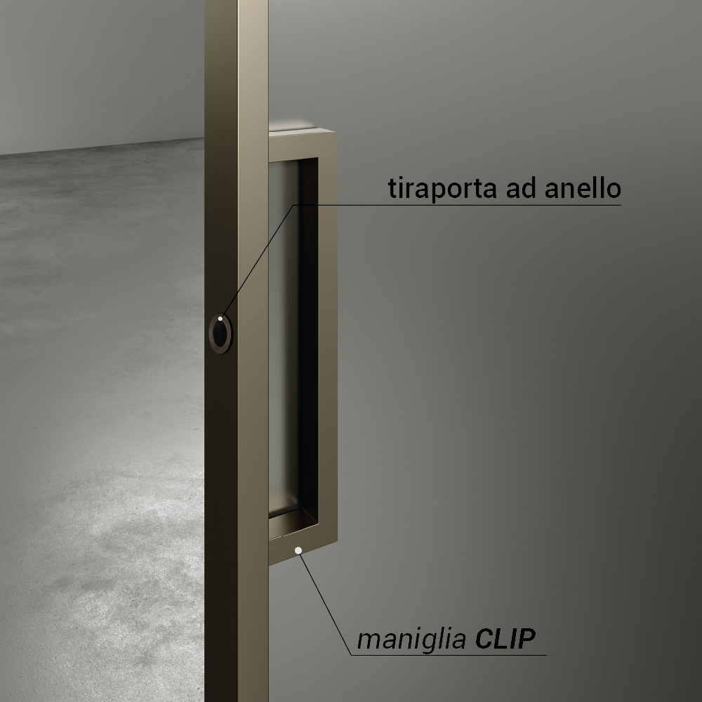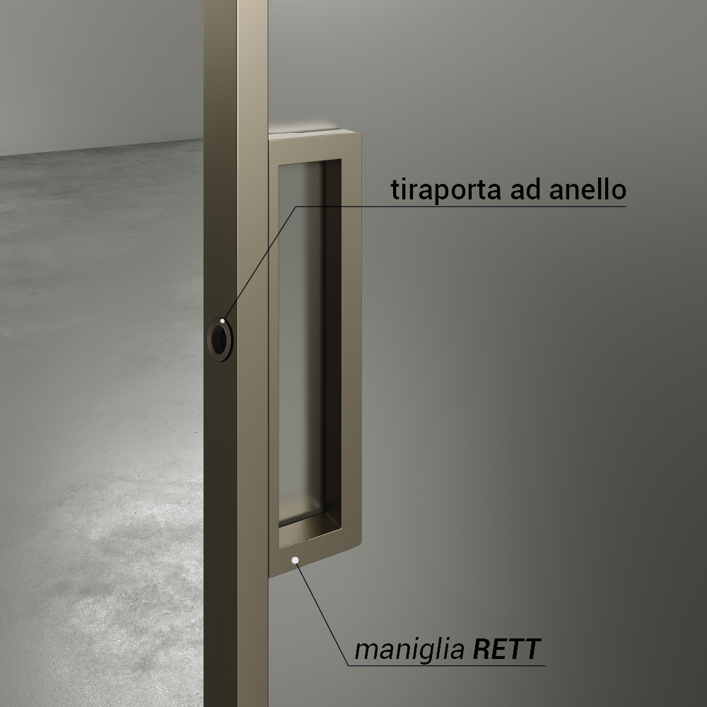 Maniglie, adattatori maniglia nonché relativi accessori (es. nottolini) sia per porte a battente che scorrevoli, sono realizzati in alluminio della stessa lega dei profilati della porta al fine di ottenere le stesse finiture.